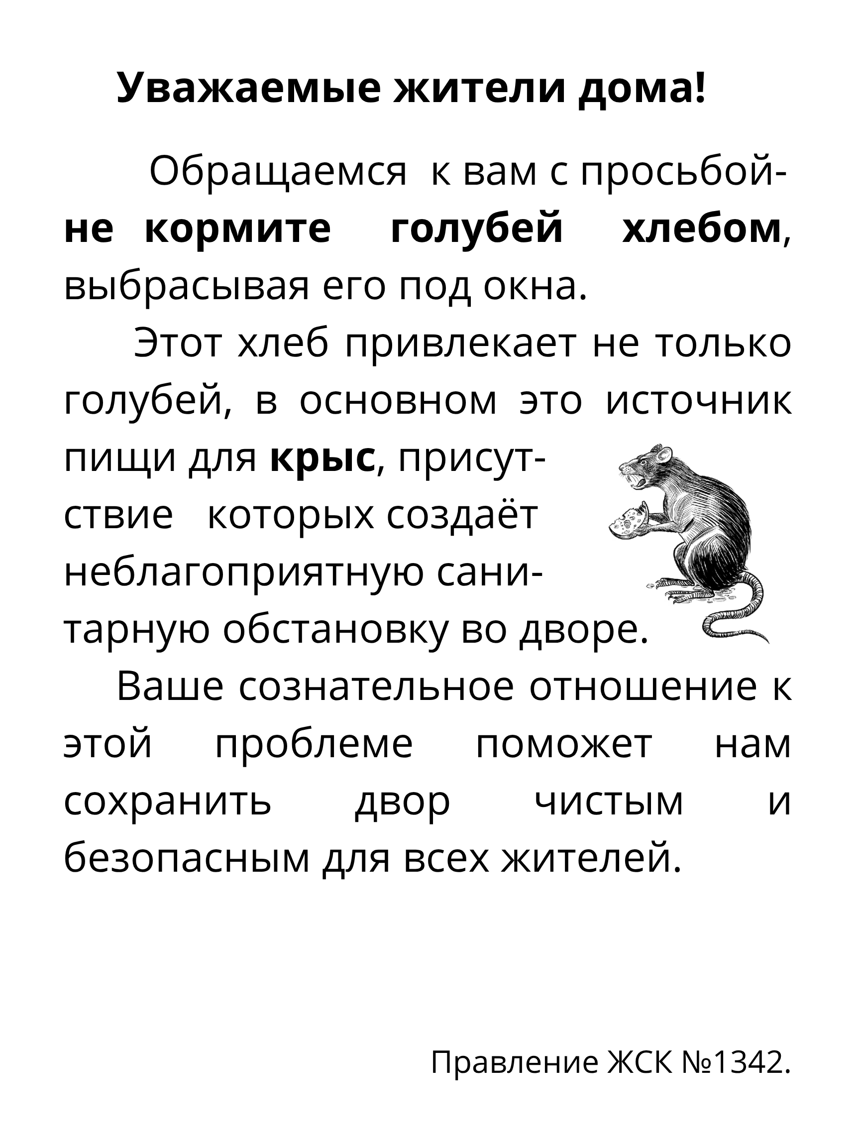 Просим вас проявлять уважение к соседям.